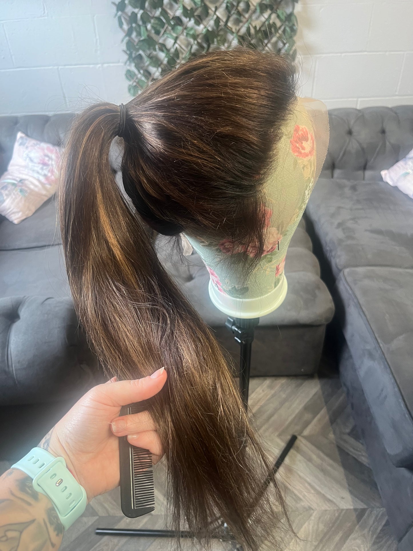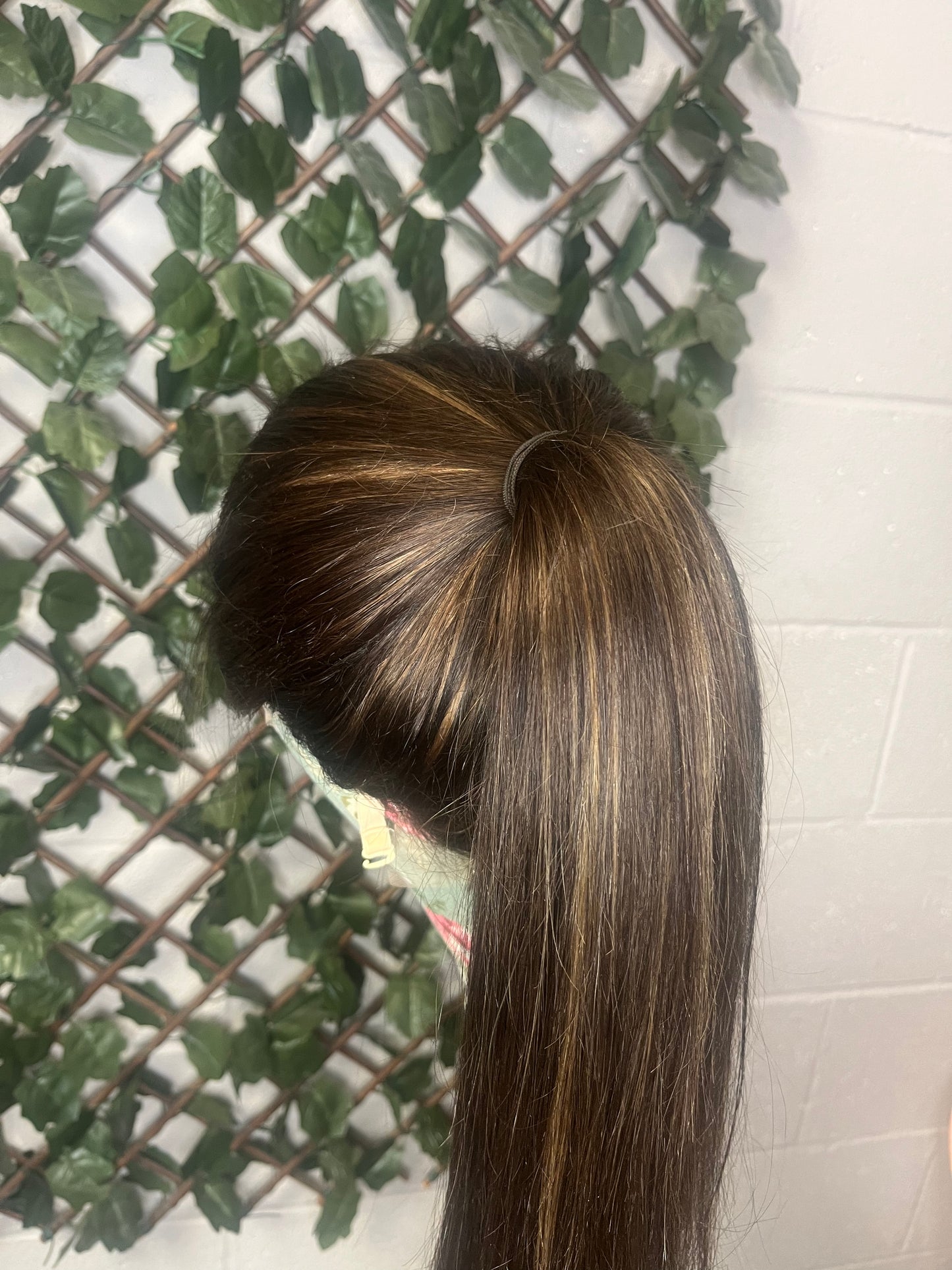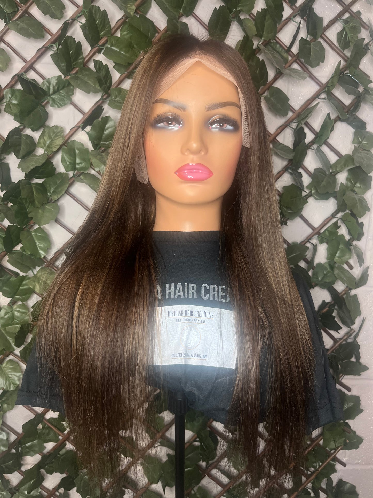 Alexia features beautiful warm tones made up of dark brown, a dark root smudge and complimenting caramel highlights. Photos and videos are taken both indoors and outdoors to show you the colour as clear as possible.