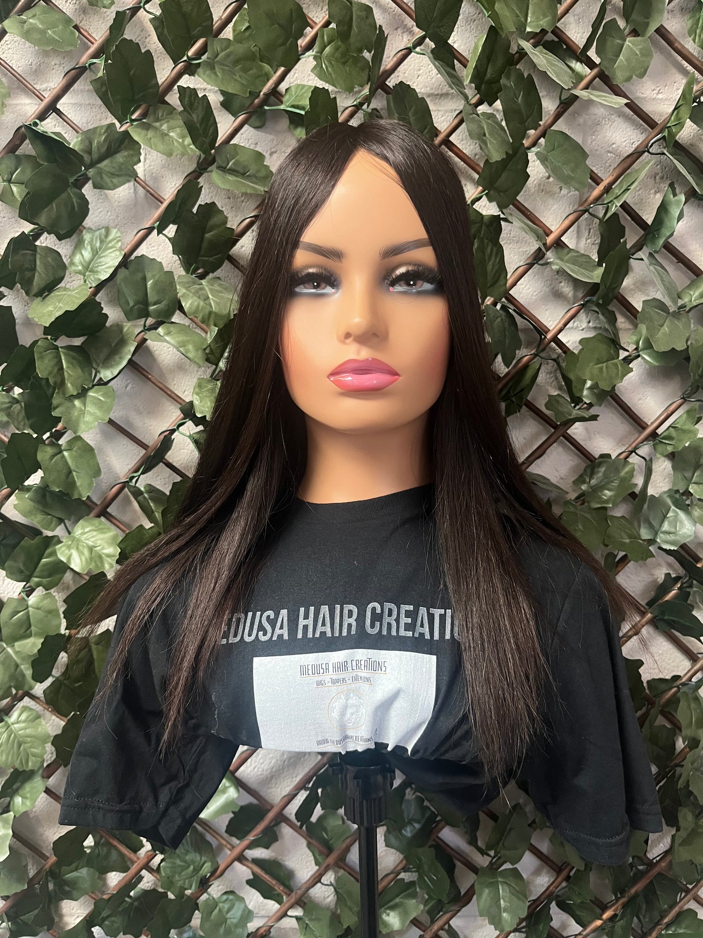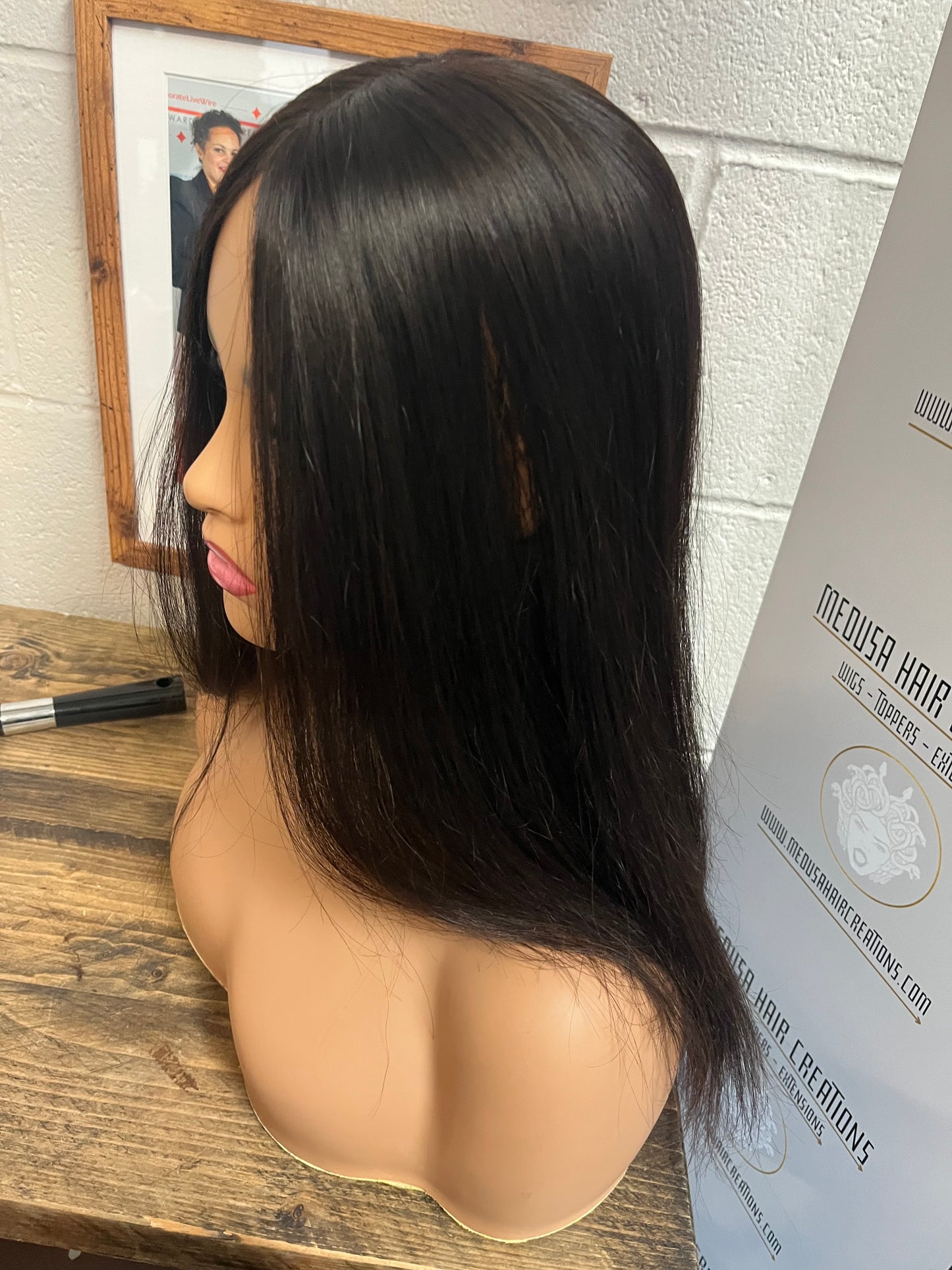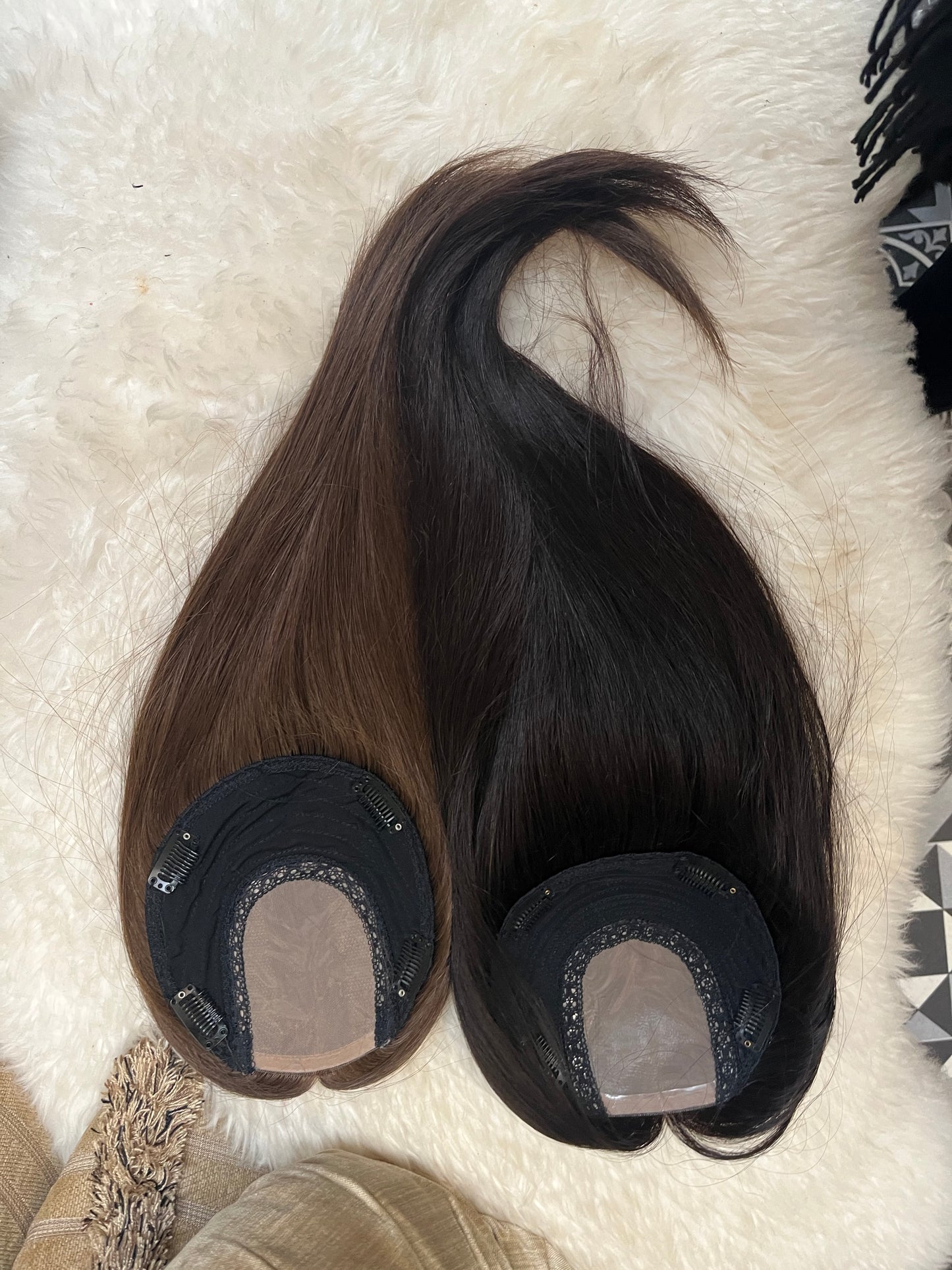 Saskia is a beautiful 130% density hair topper available in two colours - 1b Natural Black & #4 Light Brown.