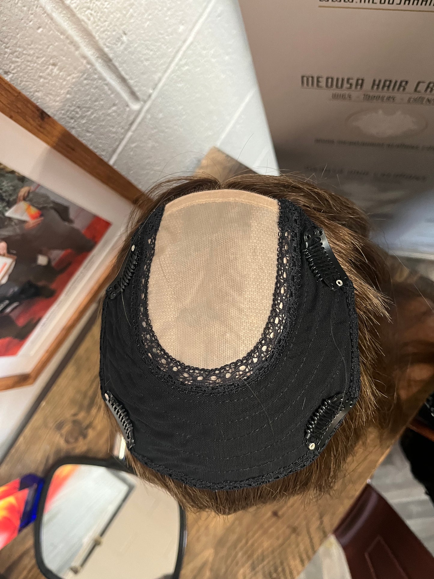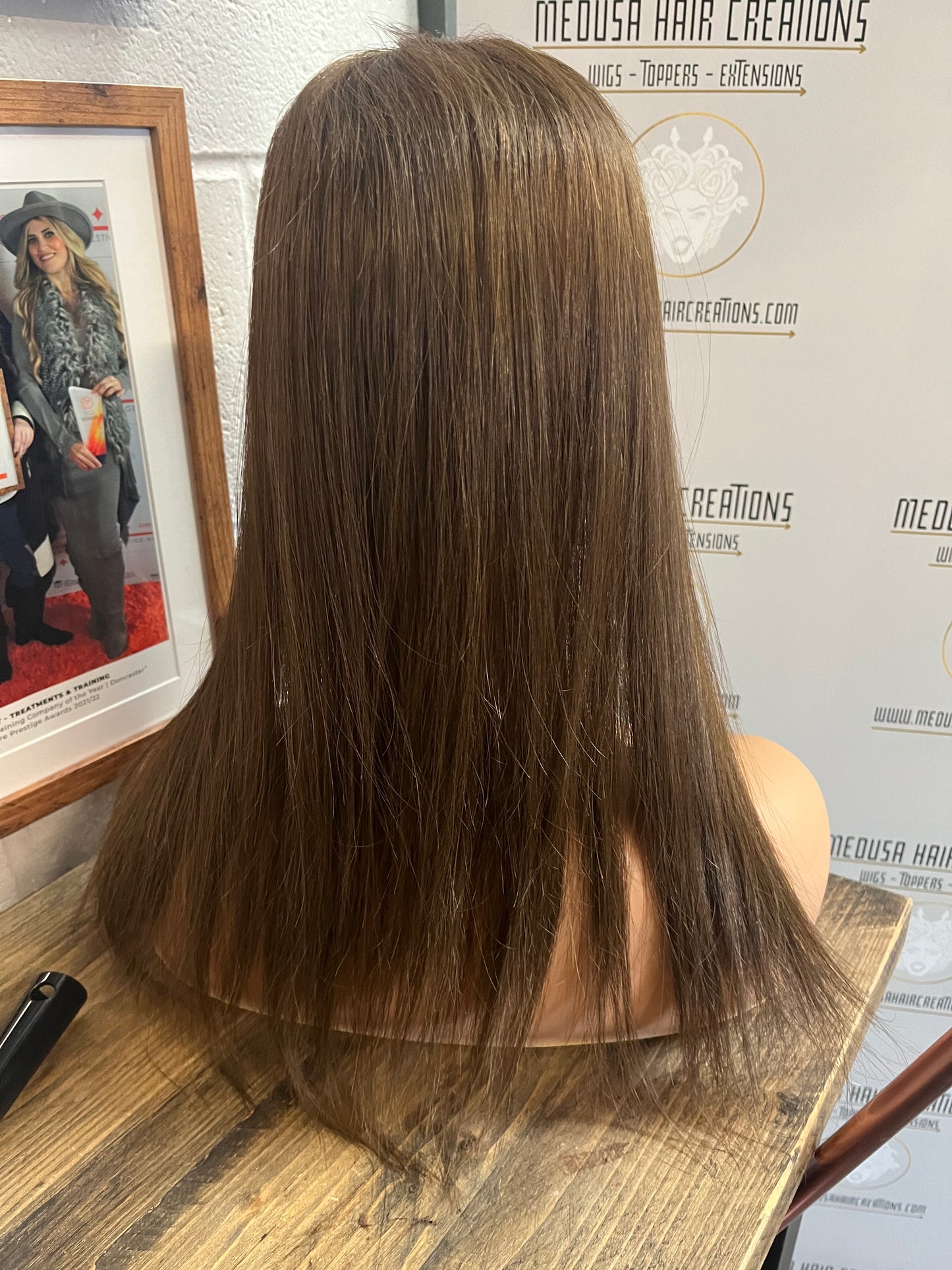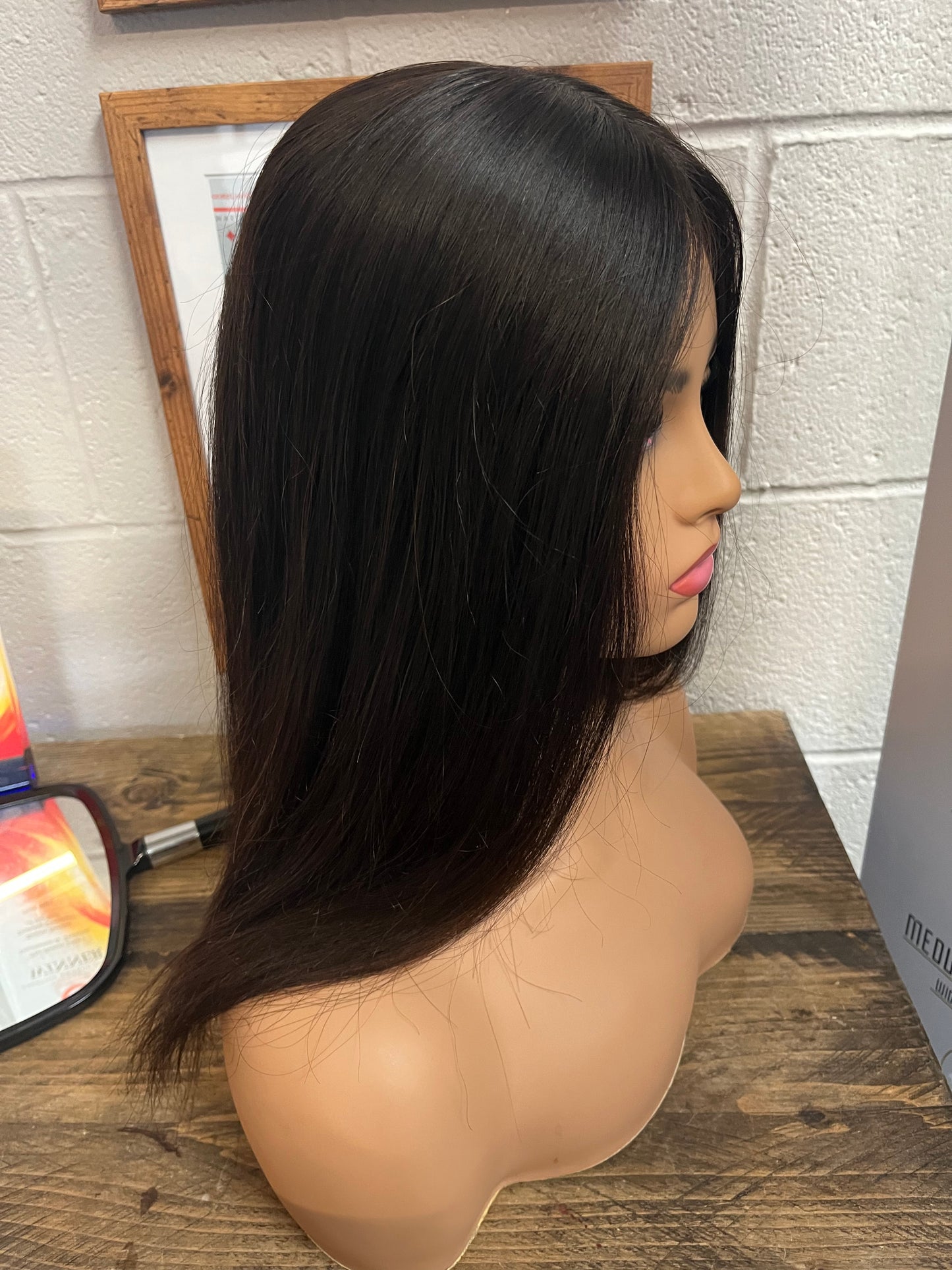 Measuring 16 inches in length, Saskia is made from beautiful remy human hair and so can be styled as your own. She features comfort clips to clip to your bio hair comfortably, and a realistic silk parting which can be parted within a 2.5x3 inch area. Saskia has wefted sides and back and her coverage area is 6x6 inches.