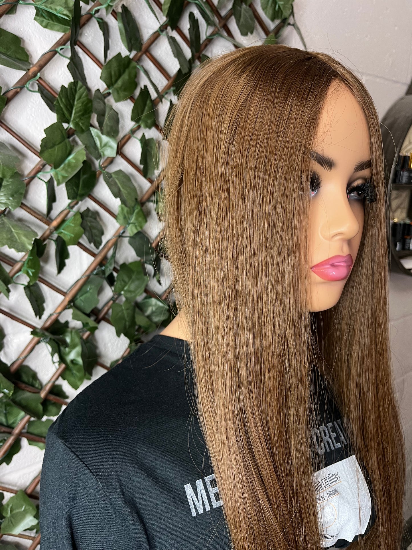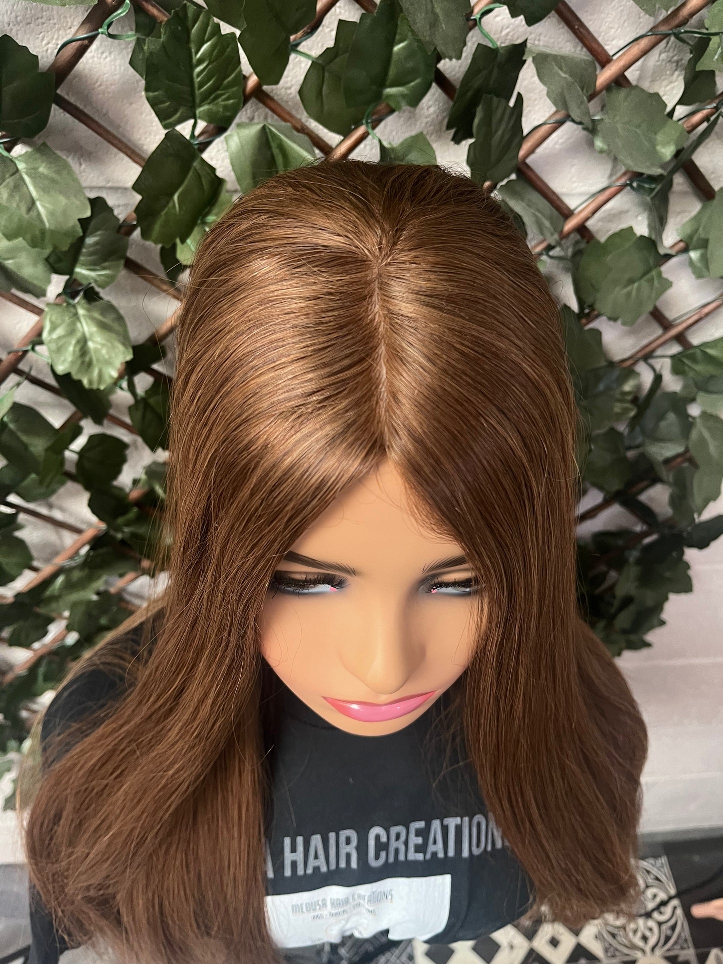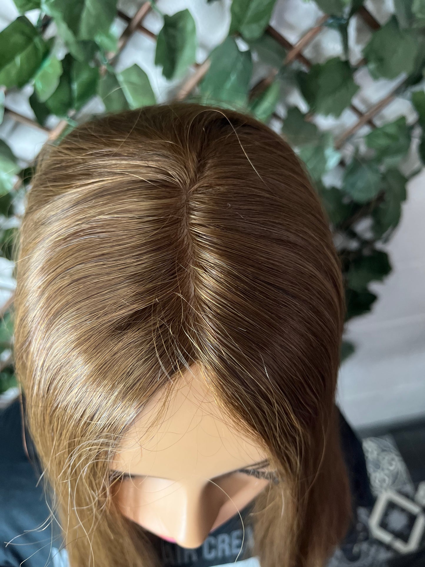 Claire is a light shade of brown 100% human virgin hair. Measuring 18 inches in length and covers a 6x6 area. As she is human hair, she can be curled and straightened.