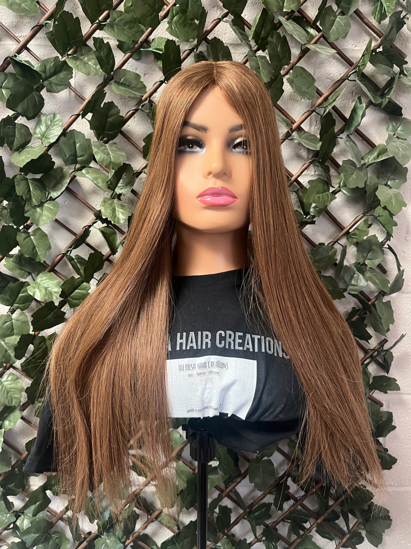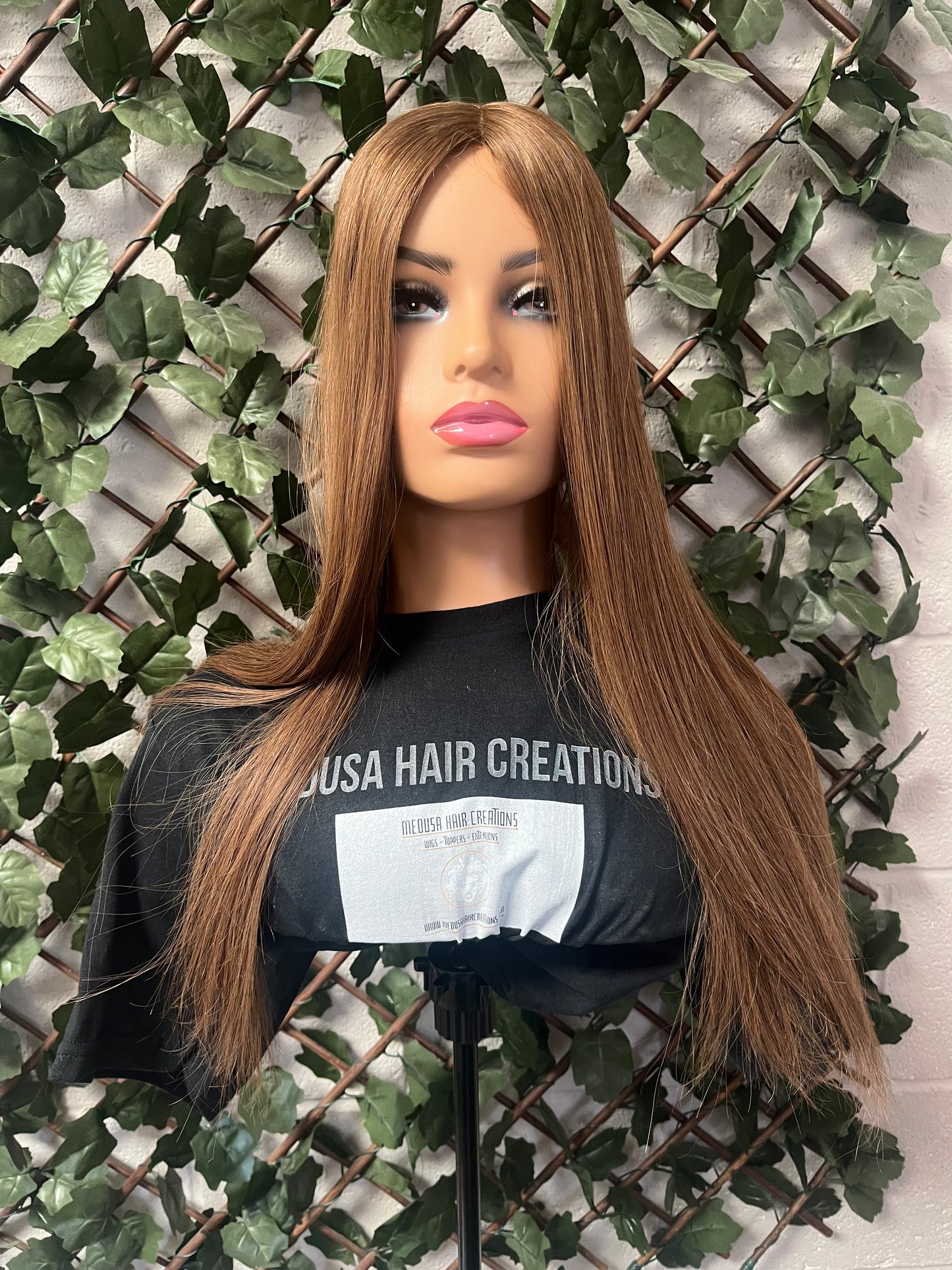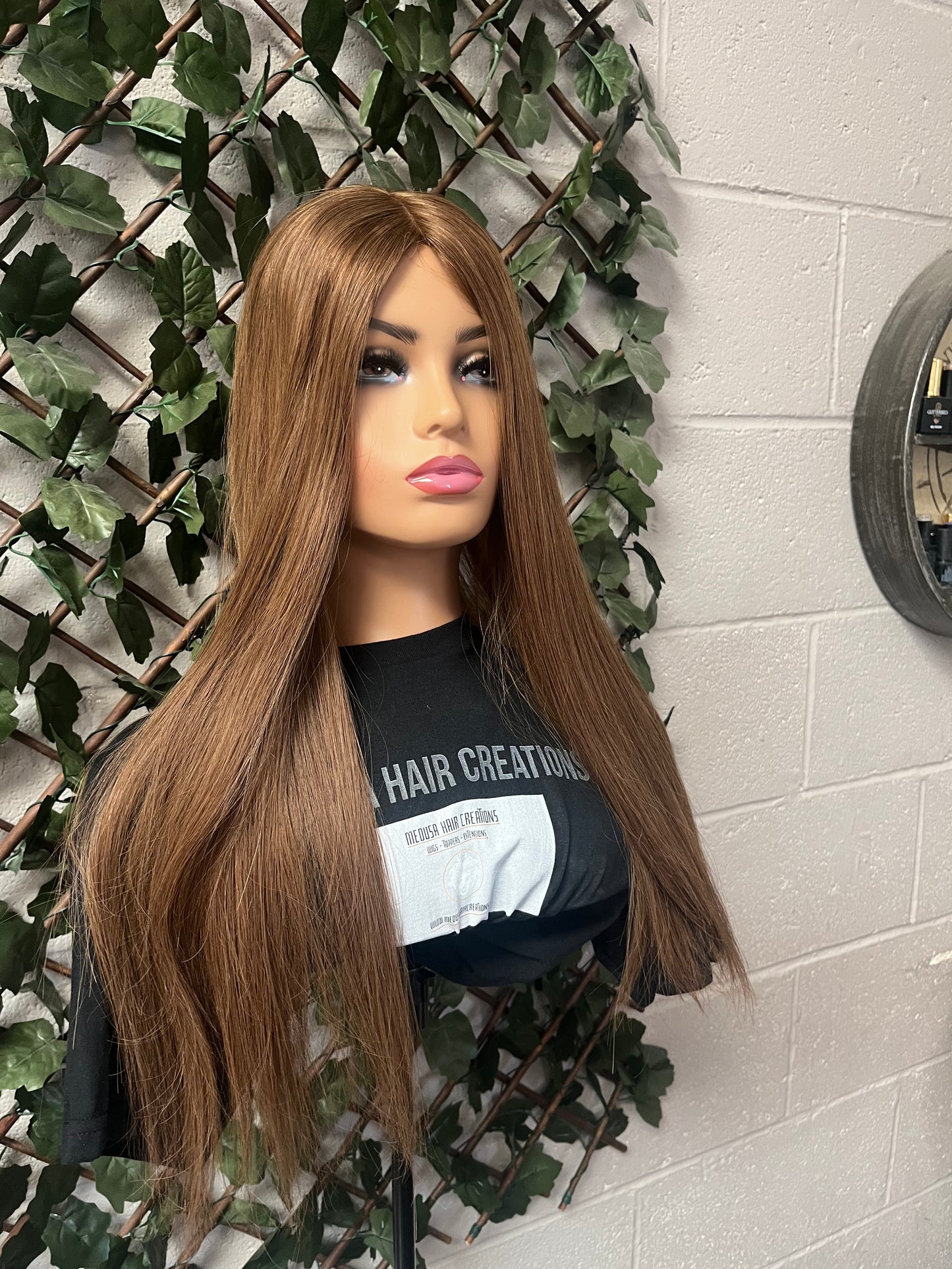 Claire is a light shade of brown 100% human virgin hair. Measuring 18 inches in length and covers a 6x6 area. As she is human hair, she can be curled and straightened.